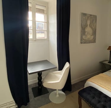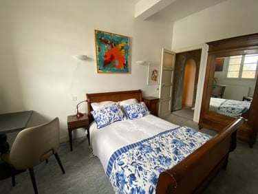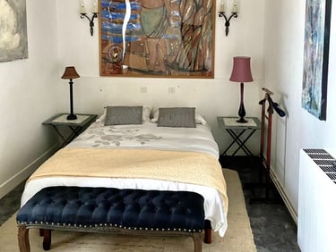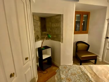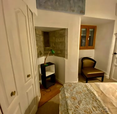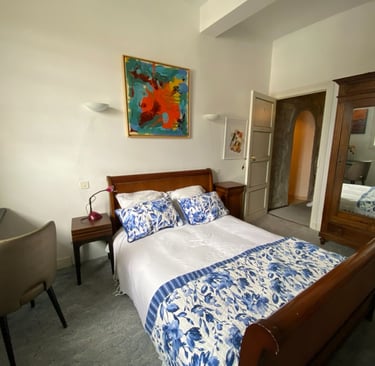 Our accommodations and studio space will be in the historic 1000 year old Guard House, a gorgeous building centered around a huge stone spiral staircase. There are eight beautifully appointed rooms, four with private baths, three with private showers and a shared WC, and one with ensuite sink and shared WC, bath and shower.